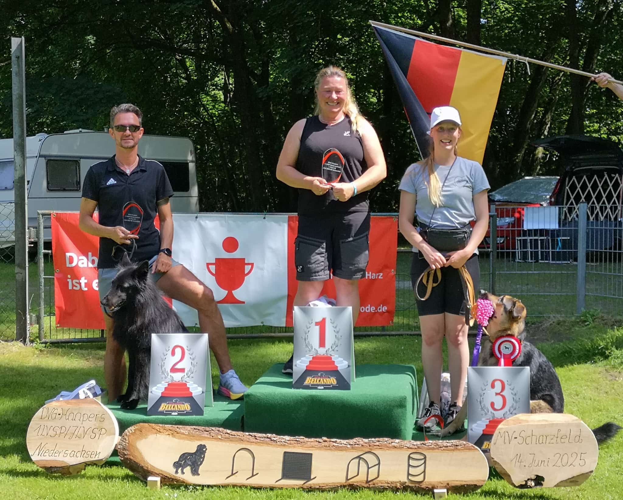 Vom 14.-15.6.25 fand beim Hundesportverein MV Scharzfeld die 1. Nds. Landesmeisterschaft und ein offenes Turnier in der Sparte „Hoopers“ statt. Viele motivierte Hundsportler*innen aus ganz Niedersachsen nahmen teil. Hochmotiviert reisten sie bereits am Freitag an.